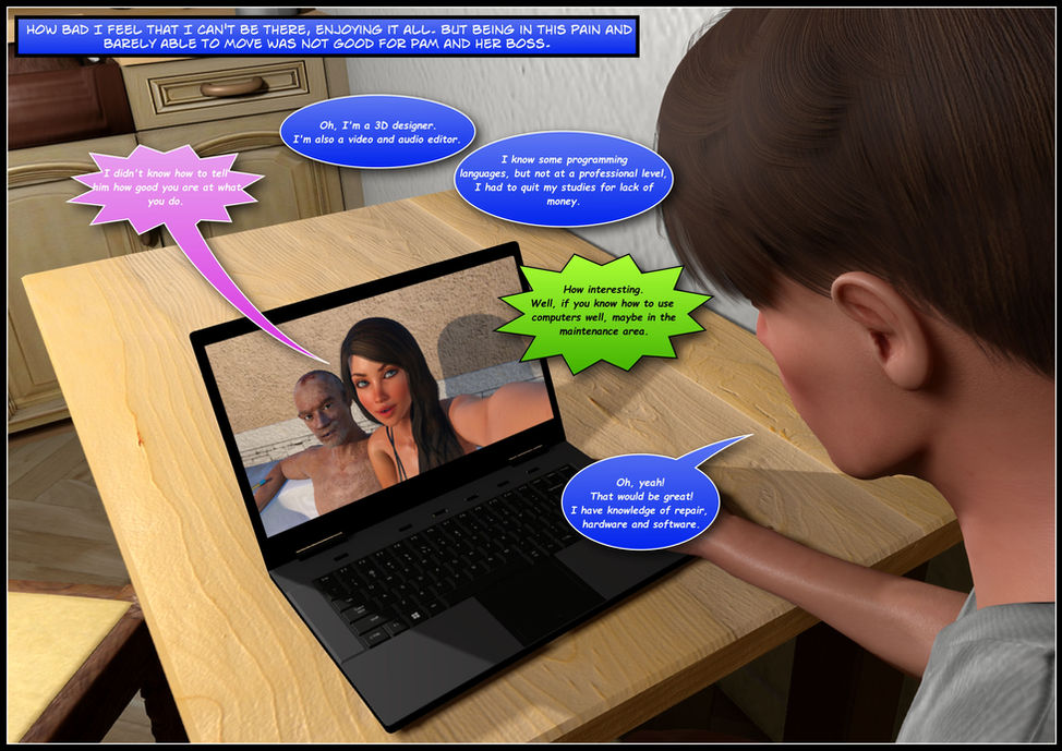 When Pamela's husband suffers an accident that leaves him without a vacation, he forces his wife to go with her boss.